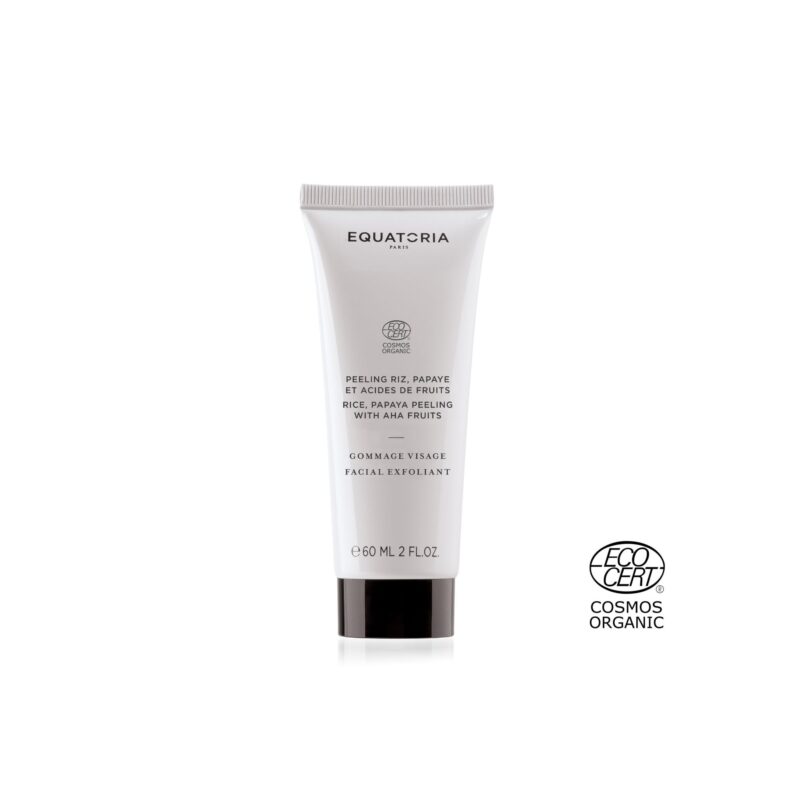 The papain (enzyme from organic papaya extract) and AHA fruit contained in this soft peeling have keratolytic properties that promote efficiently desquamation of dead cells that dull the complexion. This gentle exfoliation optimized with grain of rice regenerates the epidermis by accelerating cell renewal. As a result, the skin is smooth and the complexion radiant. The creamy texture of this exfoliant with turmeric powder orange color is rich with organic ingredients : shea butter, jojoba oil, witch hazel and cornflower hydrolates and organic extracts of calendula and bamboo.60 ml